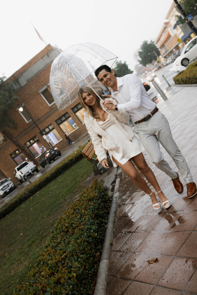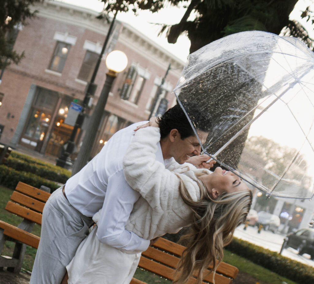 What started as a rainy engagement session in Historic Orange quickly turned into a cinematic, romantic adventure—walking quiet streets under a clear umbrella, ducking into an empty bar, and letting the rain shape the story instead of stopping it. The kind of session that feels effortless, emotional, and completely unplanned—in the best way.